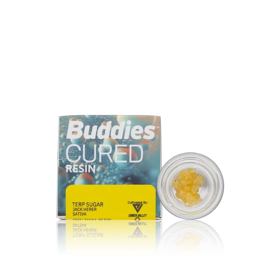Buddies Cured Resin Terp Sugar is a decadent delight of sugary THCA crystals, smothered in tasty terp sauce. This mouth-watering mix of flavor and potency in the perfect ratio provides a consistent, user-friendly experience from the first dab to the last! Made from premium indoor flower from our esteemed cultivation partners. Terpenes, flavonoids, and cannabinoids are extracted at subzero temps to en- sure every dab of our full spectrum extract is packed with strain-specific flavor and effect